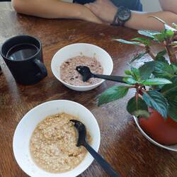 Unser Tag hat mal wieder mit einem Tgtg Frühstück gestartet. Gestärkt sind wir dann zum Stadion. Nachdem es aber so stark geregnet hat, habaen wir uns dann in ein Café gesetzt.
