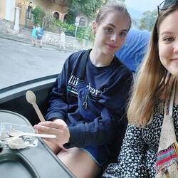 Nach einem ausgiebigen Frühstück sind wir in die Stadt gefahren, um dort unser Mittagessen für den Ausflug zum Bleder See zu kaufen. Zwei Stunden später haben wir dann auch endlich unser Ziel erreicht, dort gegessen und gebadet. Danach haben wir einen Spaziergang um den wunderschönen See gemacht. Heute hat sogar Maria bei der kurzen Sporteinheit mitgemacht. Auf der Busfahrt nach Hause haben wir dann den lake bled cream cake probiert (auf dem Foto leider schon fast weg - war halt lecker). Im Gegensatz zum Kuchen haben uns die Brezeln gar nicht geschmeckt. Die hätte man gar nicht mehr trocknen müssen, um sie zu Semmelbröseln zu verarbeiten :(.