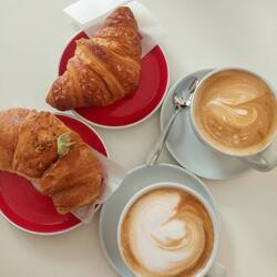 Bei unserem Frühstück in einer Panetteria haben wir Cornetti mit Marmelade, Pistanzienfüllung und Crema probiert. Danach haben wir in Venedig zu Mittag gegessen. Dann sind wir nach einer kurzen Zugfahrt in Verona angekommen. Wir übernachten in einem Zimmer zu zweit - richtiger Luxus - dafür gibt es leider keine Küche.
