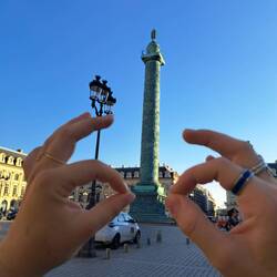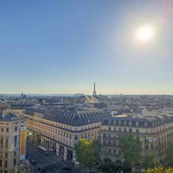 Frühs haben wir im Café von unserem Hostel Postkarten (an euch) geschrieben und danach bei der Post abgegeben. Waren zusammen 18 Karten, dementsprechend war dke Briefmarkenrechnung ganz schön hoch (den genauen Betrag möchten wir hier nicht nennen, falls es euch aber sehr interessiert, haben wir eucv ein Bild der Rechnung mithochgeladen). Dann haben wir uns das Marrais, das jüdische und queere Stadtviertel, das im Endeffekt gar nicht wirklich queer gewirkt hat, angeschaut und dort Falafel zu Mittag gegessen. Danach sind wir zur Galérie Lafayette auf die Dachterrasse, von der man einen sehr schönen Ausblick über Paris hat und deren Kuppel von innen auch total schön aussieht, zum Arc de Triomph und zum Eiffelturm gefahren und haben auf einer Wiese vor dem leuchtenden Eiffelturm zu Abend gegessen.