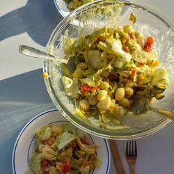 Zum Mittagessen gab es ein letztes Mal Burgerpatties, diesmal im Salat. Am Nachmittag sind wir dann in die LXFactory gefahren, dort gibt es viele coole Geschäfte, leider ist auch alles sehr teuer, deswegen haben wir mehr geschaut als gekauft, Spaß gemacht hat es trotzdem. Nachdem wir abends to good to go abgeholt haben gab es zum Abendessen vegane Lasagne und Salat.
