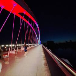 Am Nachmittag sind wir den Berg zum Santuario della Madonna di Lourdes hochgelaufen, was zwar gerade in der Hitze sehr anstrengend war, aber für den Ausblick hat es sich auf jeden Fall gelohnt. Danach waren wir noch einkaufen, haben uns erneut einen Tgtg-Tüte mit Gebäck abgeholt und haben damit den Abend an der Etsch mit einem wunderschönen Sonnenuntergang ausklingen lassen. Zurück im Hostel sind wir müde ins Bett gefallen, weil wir heute mehr als 30000 Schritte gelaufen sind.