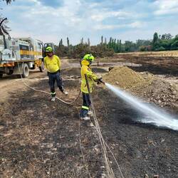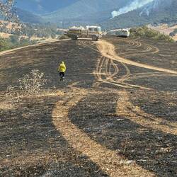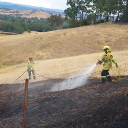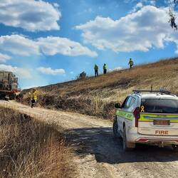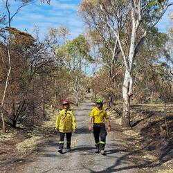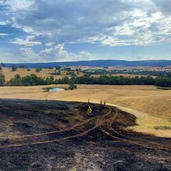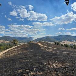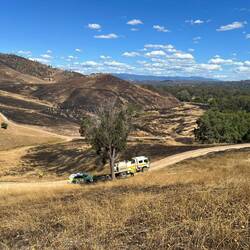 As we had gone as far as we could with our patrol area and had checked out all our allocated hotspots, we were tasked to respond to a hotspot picked up by thermal imaging on a nearby property. The farmer had no idea what we were referring to, but it turns out there was an area on his property that had burnt but was not mapped so we checked it out. It was a nice little patch where the river elbowed in a little valley. We didn't end up finding any problems, so we headed out, encountering Molonglo Command on our way back. We were released for a lunch break and after lunch checked out the other end of the sector we were patroling earlier in the day. A locked and impassible gate and very steep terrain later, and we were heading back out to the main road, having encountered no issues.