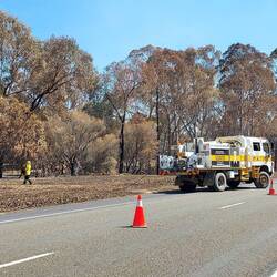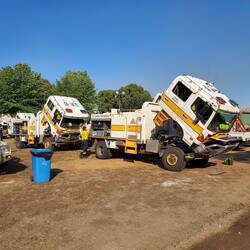We got on the road by 07:00 and drove an hour up the road to Tallangatta. Here we attended the staging area for the Walwa fire, where the trucks were serviced and Michael took a turn driving for 2 hours from 10:00 to about 12:00, where we reached Swanpool for a 20 min lunch break, then back on the road again for Alexandra.
