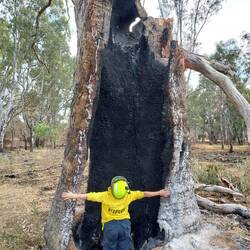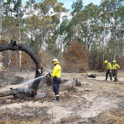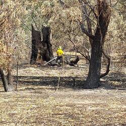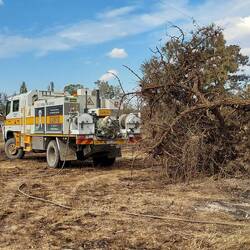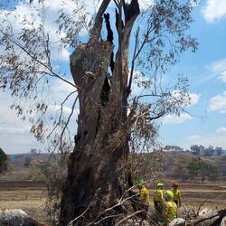 We were sent to a tree that was down over one of the bush tracks, and I managed to put my chainsaw training into action; the tree had a fire burning within it and it needed to be cut up so it could be controled and so it could be removed from the fence it had damaged when it had come down.