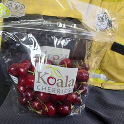 We filled up at the Koala Cherries factory, which is where we had been filling up all day and the manager on duty gave us a pallet box full of bags of cherries, close to 12 kg in all. We gave them out back at staging as there were way too many cherries for us to eat on our own.
