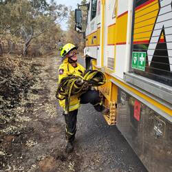 We were tasked to travel in convoy with 2 other units to check out some identified hotspots on the mountains along Brooks Cutting Rd above the Goulburn River. We only had a very narrow and windy 4WD track, which really tested my nerve as the driver but I managed. It also tested Les's nerve with his previous experience with steep inclines. It also didn't help that Gungahlin 10 (GUN10) has a tendency to overheat on hills; it was a slow trip back as a result of this.