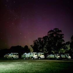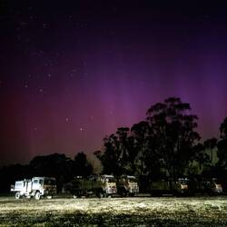 We made it back in time for dinner and had a debriefing on the whole campaign after dinner. A group of the members headed down to the pub and purchased some beers to have back at the camp, but I chose not to participate. I had gotten word that a very high Coronal Mass Ejection event would be causing some very visible and strong Aurora activity, due from about 21:15 onwards. Les, MJ, Kevin and myself headed down to the oval where it was dark and we could sit on top of Gungahlin 10 to see if we could see anything of the Aurora Australis... and we did!