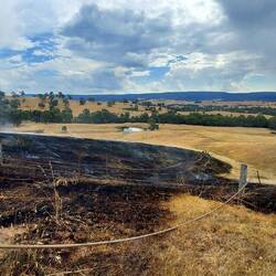 Inevitably, with the storm came lightning strikes and, more inevitable, one of the lightning strikes sparked a grass fire half an hour before we were due to knock off for the day. We raced for the fire and assisted with mop up as it was small enough that by the time we got there the farmers had managed to control it with thir ATVs.