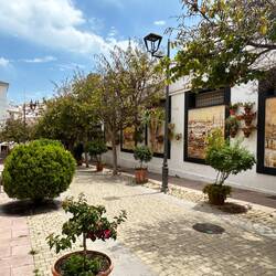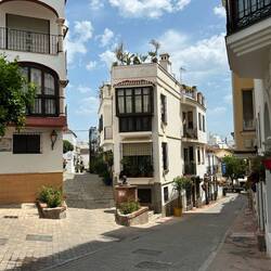 Der Uferweg, der von unserem Hotel zum Zentrum von Estepona führt, ist erfreulich gut ausgebaut und oft von Palmen oder Büschen voller Blumen gesäumt. So war der Weg nach Estepona mit Blick aufsLue lisää