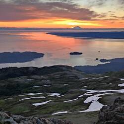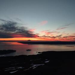 Gegen 23 Uhr wurden die Mosquitos immer weniger und wir trauten uns wieder aus dem Zelt. Der heutige Sonnenuntergang war einer der traumhaftesten den wir jemals sehen durften. Wir hatten das Gefühl, dass sich die Natur heute besonders viel Mühe gibt, um uns beide zu beeindrucken. Bis weit nach Mitternacht saßen wir vor unserem Zelt. Es war noch immer windstill und es hatte sehr angenehm Temperaturen für diesen Teil der Erde. Erschöpft und glücklich schlüpften wir gegen 1 Uhr in unsere Schlafsäcke, was für ein toller Tag! 😍Read more