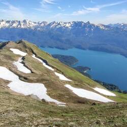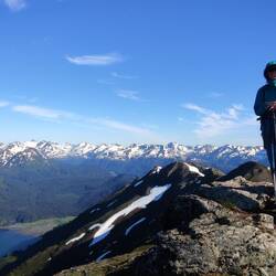 Perfektes Wetter war für heute und morgen angesagt. Bei viel Sonnenschein und kaum Wind starteten wir im dichten Wald der Grace Ridge Halbinsel gut gelaunt in unser neues Abenteuer. Es war sehr schwül und es herrschte eine hohe Luftfeuchtigkeit, doch wir kamen zügig voran. Sehr interessant war es, die verschiedenen Vegetionszonen der Insel zu erleben. Diese änderten sich alle paar Hundert Höhenmeter. Vom dichten Wald mit Laubbäumen und Nadelbäumen kamen wir zu den hohen Büschen und einem Hochmoor, danach folgten latschenähnliche Gewächse und weiter oben kam die Tundra Landschaft mit Gräsern und verschiedensten endemischen Wildblumen.
