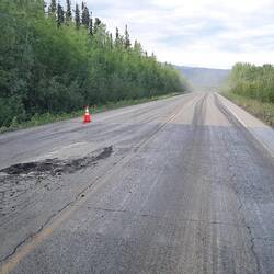 Bis nach Fairbanks ist es noch sehr weit, aber wir nehmen die Strecke auf uns, damit wir am nächsten Tag zu einer Werkstatt fahren können, um den Steinschlag reparieren zu lassen. Wir hoffen, dass dies noch möglich sein wird.