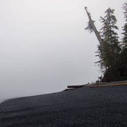 Heute wachen wir früh auf. Der Nebel ist immer noch da, aber nicht mehr ganz so dicht wie am Tag zuvor. Plötzlich hören wir Walgesang in den Tiefen des Nebels vor unserer Haustüre. Vielleicht ein Orca? Wir sehen zirka 50 Meter vom Strand entfernt einen schwarzen Punkt durch das Wasser zischen. Theoretisch kann dieser Punkt die Rückenflosse eines Orcas gewesen sein, erfahren werden wir es leider nie, denn so schnell wie der schwarze Punkt gekommen ist, ist er auch wieder verschwunden. Schnell packen wir unsere Sachen zusammen und begeben uns zum Belly Rubbing Beach, dem Strand an dem sich regelmäßig die Orcafamilien ihre Bäuche an den runden Steinen reiben. Dort angekommen schlagen wir an einem für uns geeigneten Platz unser kleines Beobachtungszentrum auf. Auf der Picknickdecke sitzend in eine Daunenjacke gehüllt beobachten wir das Wasser um uns herum genauestens mit dem Fernglas. Einige Delfine schwimmen vergnügt am Strand entlang. Auch einen Seelöwen können wir mehrere Minuten lang beobachten. Kurz darauf wird der Nebel leider wieder dichter. Auch diesmal waren wieder keine Orcas da um ihre Bäuchlein an den Steinen zu reiben. Wir beschließen bei dichtem Nebel unser Beobachtungszentrum abzubauen um die Fähre zurück nach Vancouver Island/Port McNeill um 11 Uhr zu erwischen. Spontan buchen wir eine Whalewatching Tour, die um 12 Uhr in der Nähe von Telegraph Cove starten wird. Das gibt es ja nicht, denken wir uns, dass wir in einem der weltbesten Gebiete für Killerwalbeobachtung keine Orcas sehen. Die Tour auf dem Schiff Seasmoke wird am Steg des Campingplatzes von Alder Bay starten. Von dort aus haben wir von 23.-24.8. bereits genächtigt und einen großen Buckelwal in der Nähe dieses Steges sehen können. Gott sei Dank ist die Fähre pünktlich und wir schaffen es auf die Minute genau am Steg zu sein, sodass keine Wartezeiten wegen uns entstehen. Wir bekommen Trockenanzüge verpasst, damit uns am Wasser nicht kalt wird. Nach einer kurzen Einschulung bezüglich Safety an Board und Überleben im Wasser erfahren wir, dass es seit kurzem im Norden von Vancouver Island eine neue Regelung gibt. Walbeobachtungsschiffe dürfen sich nun nur mehr bis maximal 200 Meter an Wale annähern. In der Praxis sieht das so aus: sobald ein Wal auftaucht wird das Motorboot gestoppt und man kann mit dem Fernglas die Wale beobachten um die Wale in ihrem natürlichen Lebensraum nicht zu stören. Tja, durch das Fernglas bestaunen wir etliche Buckelwale und schlussendlich haben wir auch das große Glück eine kleine Gruppe Orcas anzutreffen. Es handelt sich hierbei um eine Gruppe der Northern Residents. Diese Killerwale sind das ganze Jahr über hier in diesen Gewässern unterwegs und fressen hauptsächlich Lachse und andere kleinere Fische. Die andere Gruppe der Killerwale die es hier noch gibt sind die Transient Orcas. Hierbei handelt es sich um einzelne Tiere, die ständig unterwegs sind und deshalb auch unberechenbarer für Beobachtungen sind, denn man weiß nie, wohin diese intelligenten Tiere als nächstes schwimmen werden.