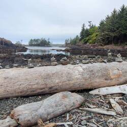 Aber so richtig können wir keine Ruhe geben, denn es gibt hier einfach zu viel zu entdecken. Am späten Nachmittag schnappen wir uns nochmals unsere Räder und fahren vom Campingplatz bis zum Long Beach, den Platz an dem wir gestern mit dem Auto geparkt haben. Somit haben wir den ganzen Pacific Rim Nationalpark mit unseren Radln erkundet. Am Long Beach werden Juttas Frisbee Künste perfektioniert und wir tauchen unere Füße in den eiskalten Pazifik. Ohne Neoprenanzug ist das schwimmen für uns hier nicht möglich. Einige wenige stürzen sich in die eisigen Fluten, unsere Hochachtung ist ihnen gewiss!