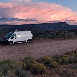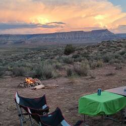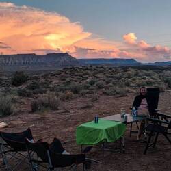 Eigentlich wollen wir heute in den Zion Nationalpark. Nachdem es heute aber zum Glück nicht so heiß wie an den letzten Tagen ist und wir diesen traumhaften Stellplatz haben, beschließen wir heute einen Rasttag zu machen. Für morgen versuchen wir erneut unser Glück und spielen in der Lotterie um ein Permit für die heißbegehrte Wanderung names "Angels Landing" im Zion NP mit und hoffen insgeheim, das Permit nicht zu bekommen, da wir noch ziemlich erledigt vom Marathon sind. 😂 Gegen Mittag sieht Michi ein europäisches Auto auf der Hauptstraße und erkennt das Logo der Roadfüchse. Ein deutsches Paar das ein Monat nach uns in Halifax gestartet ist. Michi nimmt Kontakt mit ihnen auf und sie wollen später auf ein Bier vorbeikommen. Plötzlich fährt ein Auto an uns vorbei und hupt. Es ist Volker, ein gebürtiger Steirer, der seit 30 Jahren in Utah lebt. Er hat sich ein Business mit Bauernmärkten und einer Bäckerei aufgebaut. In seiner Freizeit ist er leidenschaftlicher Schwammerlsucher und hat vor ein paar Jahren den großten Steinpilz von ganz Utha gefunden und es auch in die Zeitung geschafft. Volker hat so eine Freude Österreicher zu treffen, dass er uns zahlreiche Werbeartikel von ihm schenkt. Kapperl, Taschen und Strandtaschen. Außerdem noch Milkaschoki, Ferrero Roche und frisches Obst. Dann fährt er auch schon wieder mit seiner Verlobten Heidi los, lädt uns aber noch ein bei ihm zu Hause vorbeizukommen. Leider wohnt er im Norden von Utah und das liegt nicht mehr auf unserer Reiseroute.