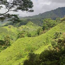 Unser heutiges Ziel ist der Kuilau Ridge Trail in der Nähe der Hauptstadt Lihue. Der Trail führt direkt durch den Regenwald und bietet grandiose Aussichten auf das dicht bewaldete Hinterland. Man glaubt gar nicht, wie viele Farbnuancen der Farbe Grün möglich sind bis man diesen lokalen Regenwald im Sonnenlicht bewundern durfte. Auch der heutige Trail ist wieder stellenweise sehr gatschig und rutschig. Irgendwann geht dann der Kuilau Ridge Trail über in den Moalepe Trail, den wir heute auch noch fast zur Gänze begehen. Gerne wären wir eine Runde gegangen, aber man kommt laut Alpenvereinsapp ca 8 Kilometer entfernt von unserem Auto aus dem Regenwald, deshalb drehen wir einfach um und gehn die selben Trails wieder retour. Am Ende waren es dann knapp über 12 Kilometer im dunstigen und heißen Regenwald, aber jeder Schritt ein Genuss! 😃 Nach der Wanderung bleiben wir noch beim Aussichtspunkt zu den Opaeka'a Falls stehen. Leider ist aber der Trail zu diesen Wasserfällen geschlossen, deshalb fahren wir schon nach einem kurzen Fotostopp weiter zum Safeways um uns ein gutes Abenessen zu kaufen. Wenn man so wie wir ohne Kühlschrank im Leihwagen bzw am Campingplatz unterwegs ist, kann es schonmal vorkommen, dass wir 2-3 Mal pro Tag zum Einkaufen fahren müssen, denn wir kaufen immer nur soviel ein, als was wir gerade verbrauchen können. Bei den schwülen Temperaturen hier vor Ort würde im Auto sofort alles verderben und das wollen wir auf keinen Fall. Uns beiden ist es sehr wichtig, dass wir keine Lebensmittel wegschmeißen bzw verschwenden müssen, nur weil wir nicht vorausschauend genug eingekauft haben.