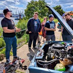 Leider schlechte Nachrichten, Team 119 hat technische Probleme. Massive Geräusche vom Motor. Trotz der super Unterstützung durch andere Teams bleibt Ratlosigkeit.