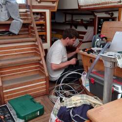 Début de l'aventure après 2 ans de préparation. Petit nettoyage du pont par nos 2 mousses et mise à l'eau sous les yeux de la famille de Mathieu venue pour l'occasion. Un dernier bisou et hop nousRead more
