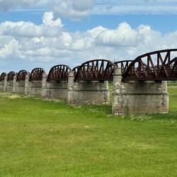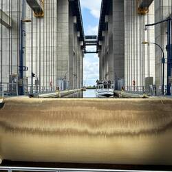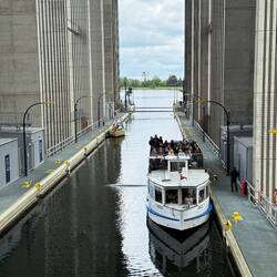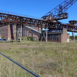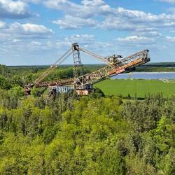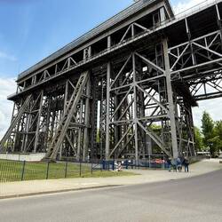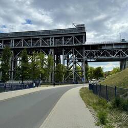 Im Süden von Usedom besichtigen wir in Karnin ein technisches Denkmal - die Reste einer Eisenbahn-Hubbrücke im Peenestrom.