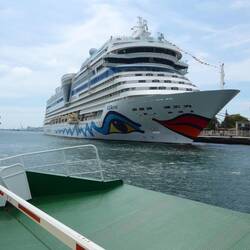 Von dort ging es mit der Fähre über die Warnow - vorbei an großen "Pötten" nach Warnemünde. Czytaj więcej