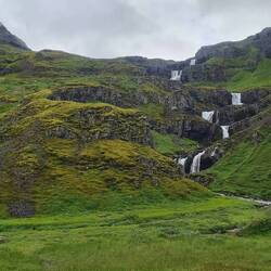 Dieser Fjord ist nur noch spärlich bewohnt wie die meisten Ostfjorde. Reichlich Wasserfälle und das Wetter meint es am letzten Tag nochmal gut mit uns