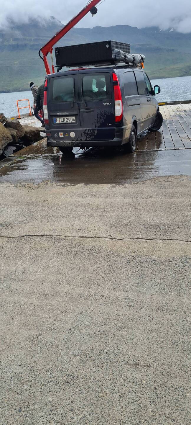 Wir haben dann kurz am kleinen Hafen angehalten und den Vito unten rum etwas gereinigt...Es kam ganz schön was runter. Und die Aussicht war auch schön