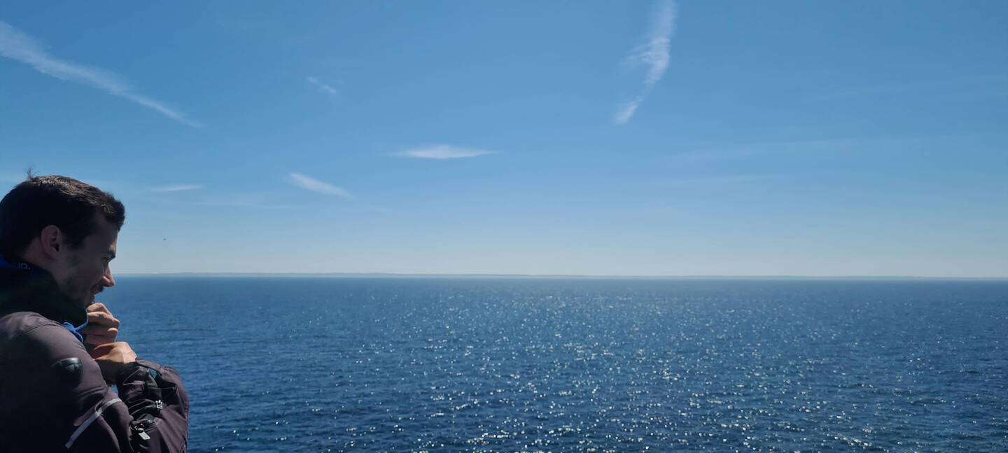 Von der anderen Seite, unglaublich, dass wir dort Gesten mit den Autos waren. Die See ist jetzt auch etwas rauer als auf dem Hinweg. Aber immer noch ruhig