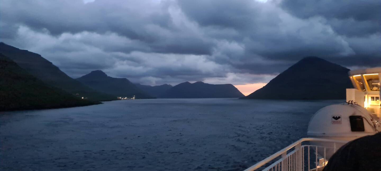 Wir sind extra mitten in der Nacht aufgestanden, um die durchfahrt durch die Färöer zu sehen. Ganz schön dunkel um halb 3