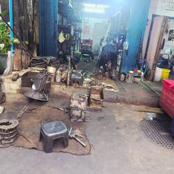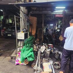 „Bangkok’s Chaos hat Stil – hier wird geschraubt, bis die Funken fliegen.“ Hier bekommt man alles, was man nicht braucht und in der Mittagspause gibt einen Joint für die Mechaniker ...