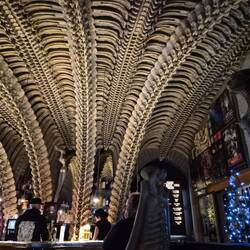 Wir nehmen den Aperitif heute in der HR Giger-Bar. Völlig abgefahren. Wer von euch jetzt Fragezeichen hat - hatten wir auch 🙃 Kleiner Tipp: Giger hat einen Oscar für die Visual Effects von "Alien" bekommen.