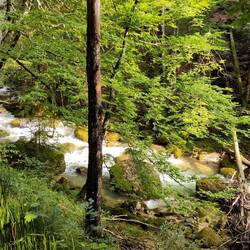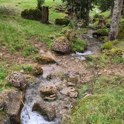 Der Weißach entlang bis zu ihrem Quellgebiet. Oberhalb liegt die Mittelbergalpe auf der europäischen Wasserscheide