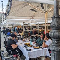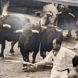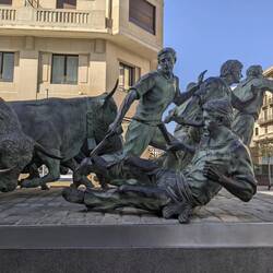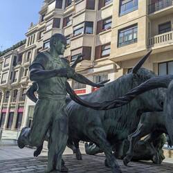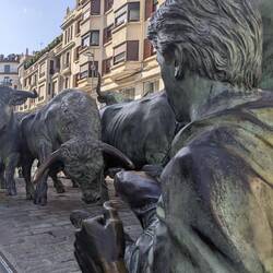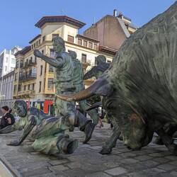 Pamplona is famous for the "Running of the Bulls" where people run in front of a herd of loose bulls. Luckily there were no live bulls wandering the streets when we were there, but there's aRead more