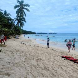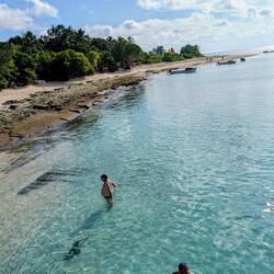 We rode tender boats to get into Dravuni Island and found the beaches were lined with flat rocky shores. The waves were a bit choppy and strong so it pushed and pulled us around. It made it trickyもっと詳しく