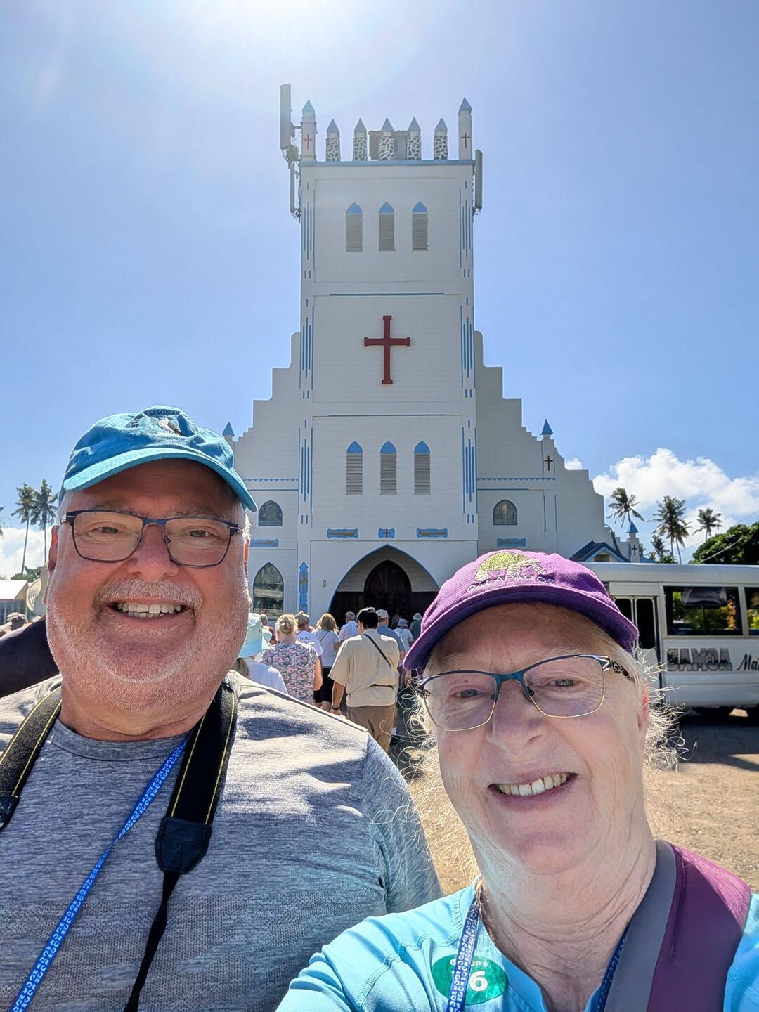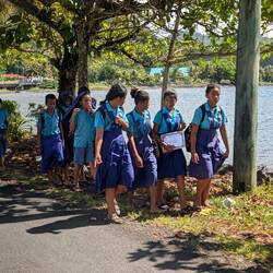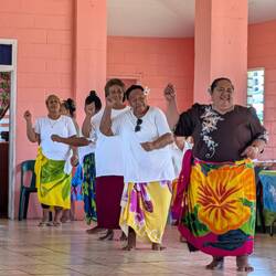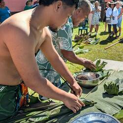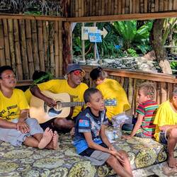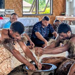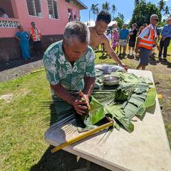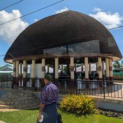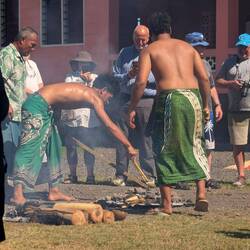 Our tour took us to Vailele where we visited a church and then the family meeting house next door. These open walled house are where the family sleeps and meets for important discussions. The men cookもっと詳しく