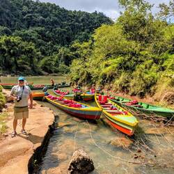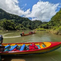 We traveled from Suma out into the country where we got into brightly coloured wooden boats and traveled another half hour up the river past waterfalls and fields with horses and cattle. We left ourもっと詳しく