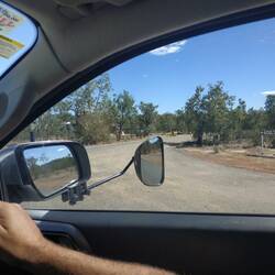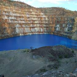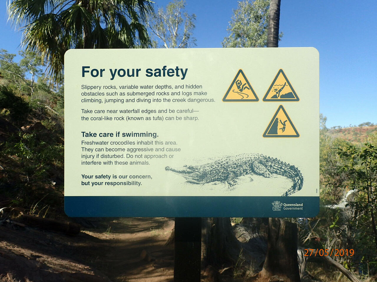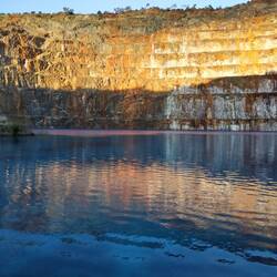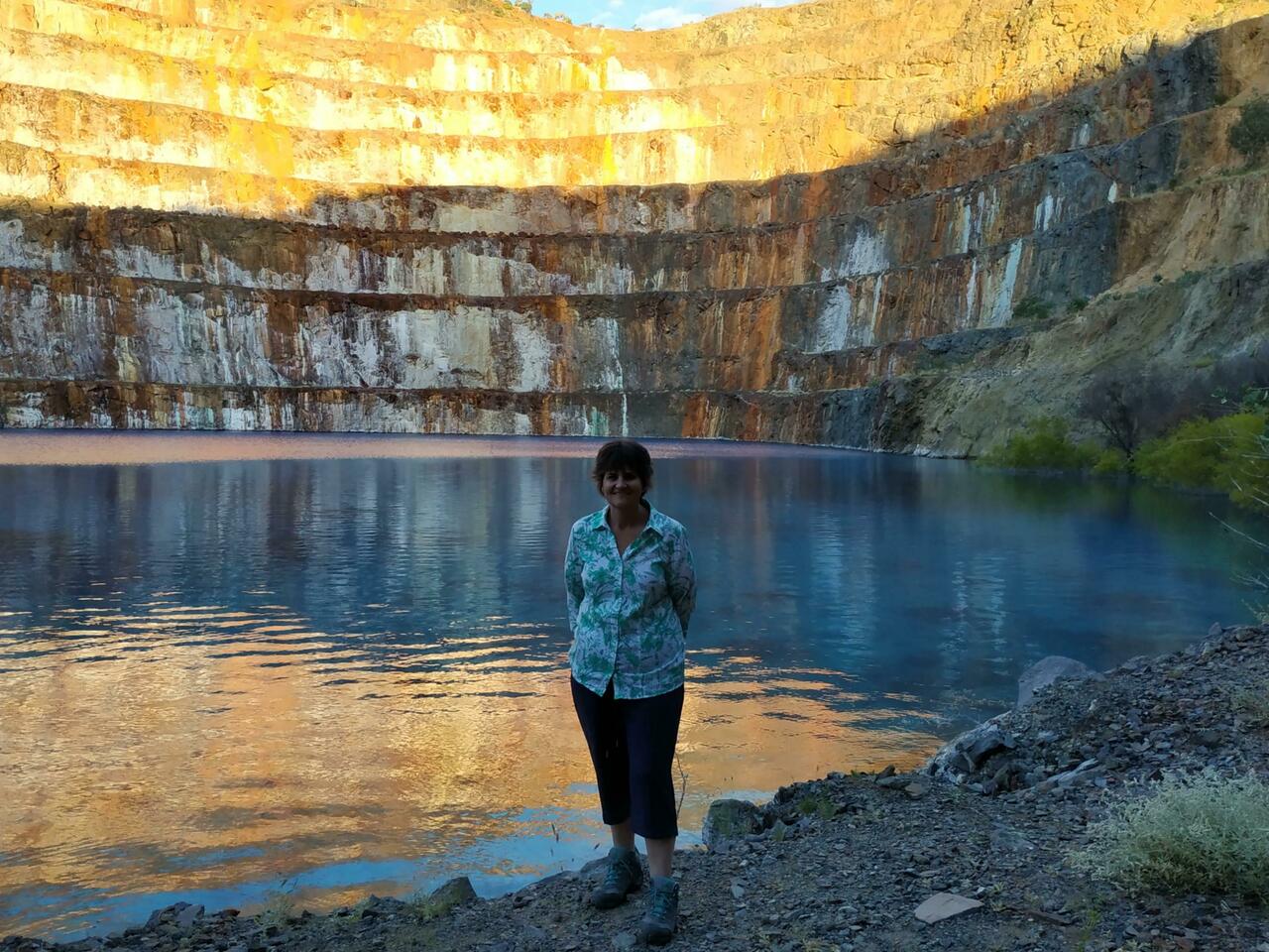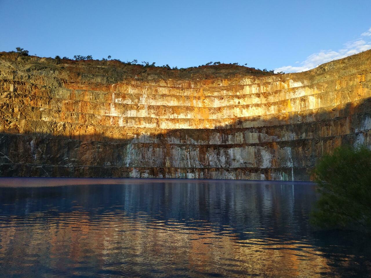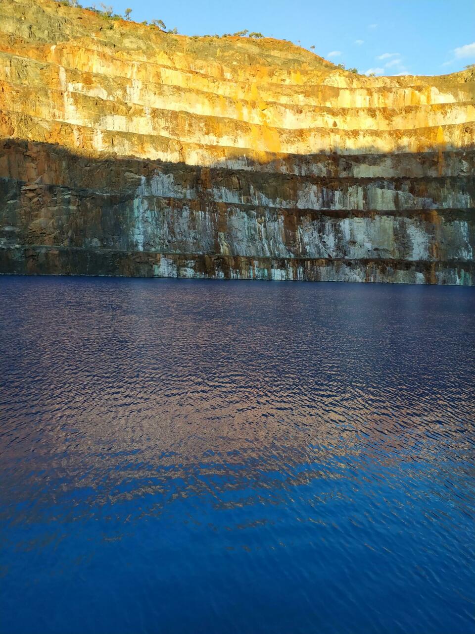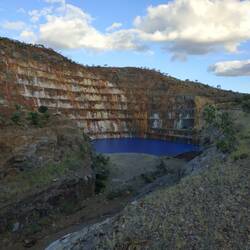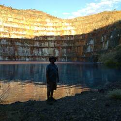 Set up at Mary Kathleen Free Camp and then went for a drive to the old mine. The water doesn't look real and is so crystal clear. Ready for the photo bombardment.