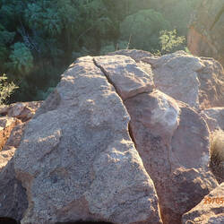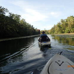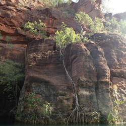 Three wallabies on a rock, baby drinking, spotted from the Kayaks this morning..