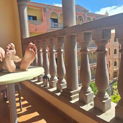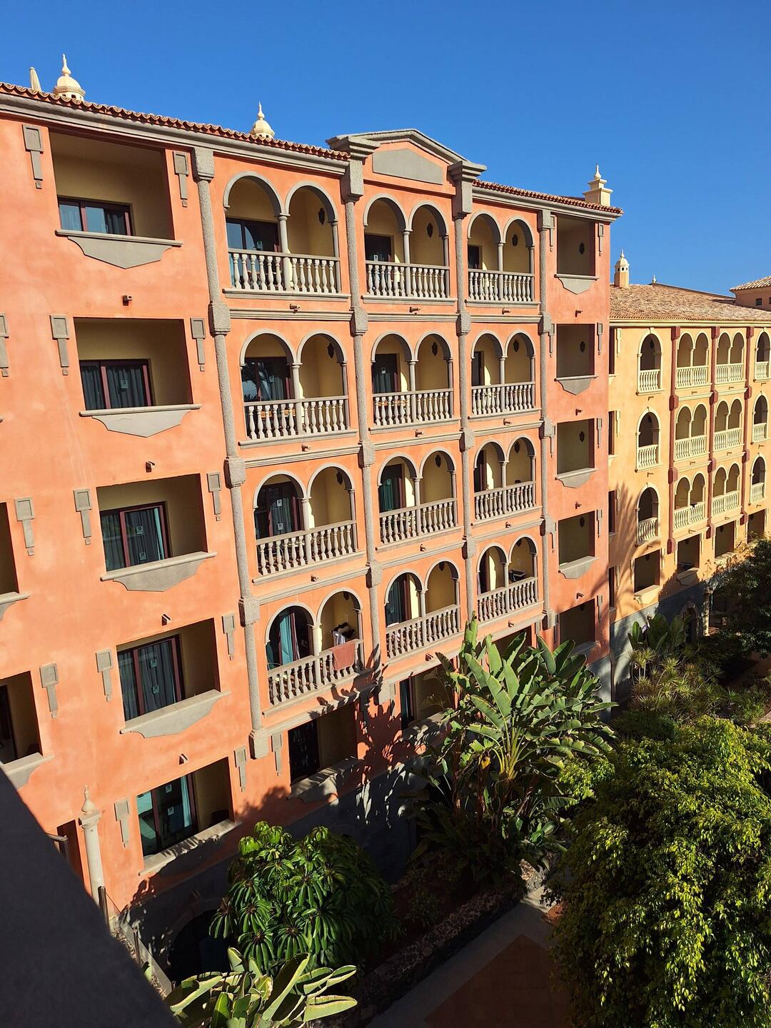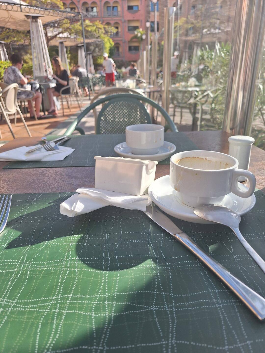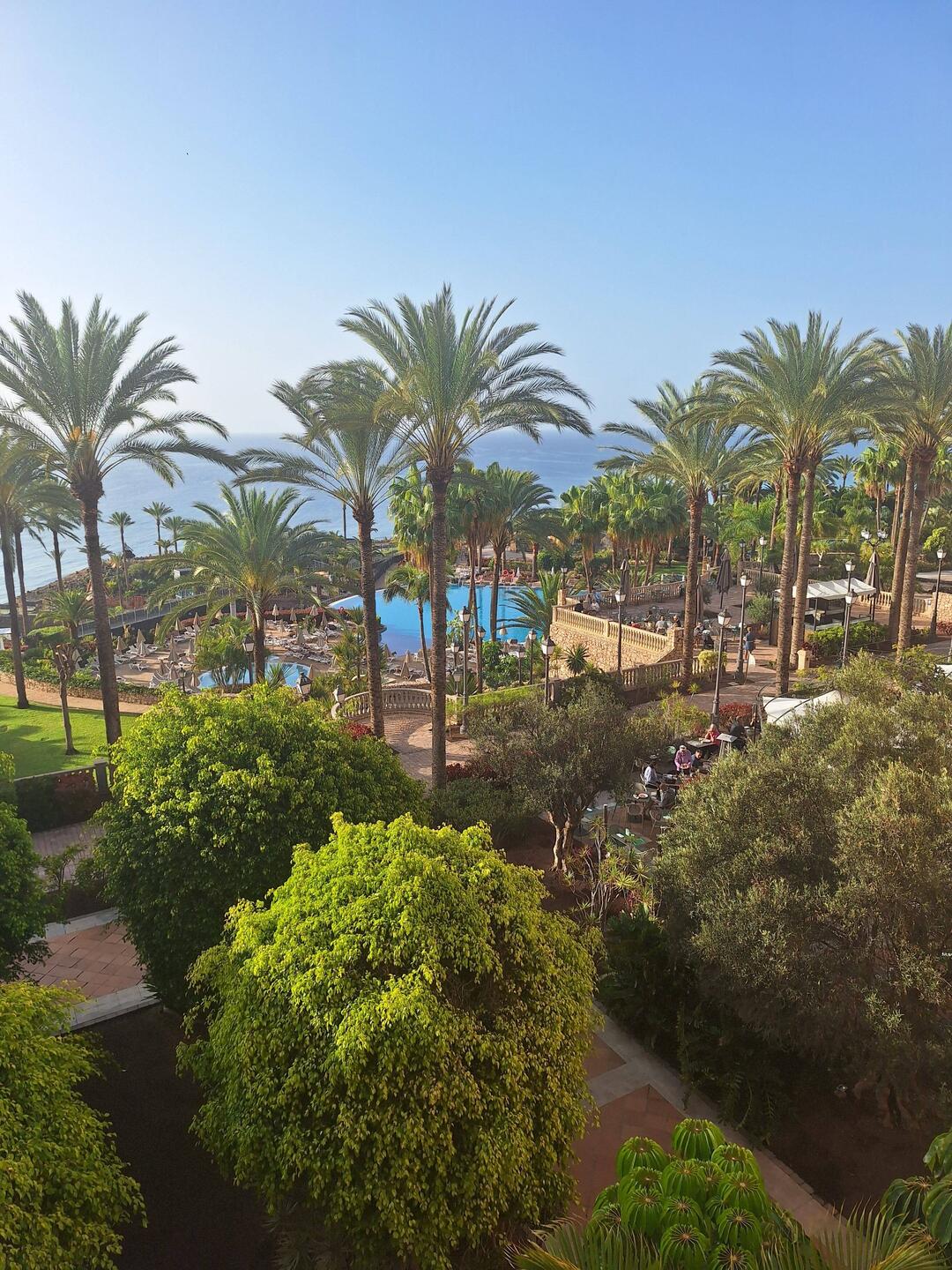 Vor dem Frühstück schlendern wir ein paar Schritte durch die wunderschöne Anlage. Das Frühstück nehmen wir zusammen mit Tony und Bernd draußen ein. Später genießen wir die canarische WärmeLæs mere