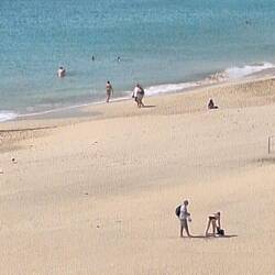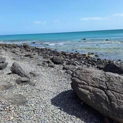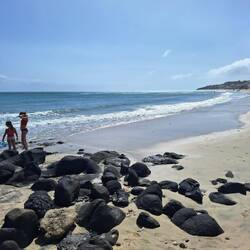 Schon beim Frühstück ist es recht frisch. Beim Weg zum Strand merken wir, dass wir einen Pulli oder ein Tuch benötigen.