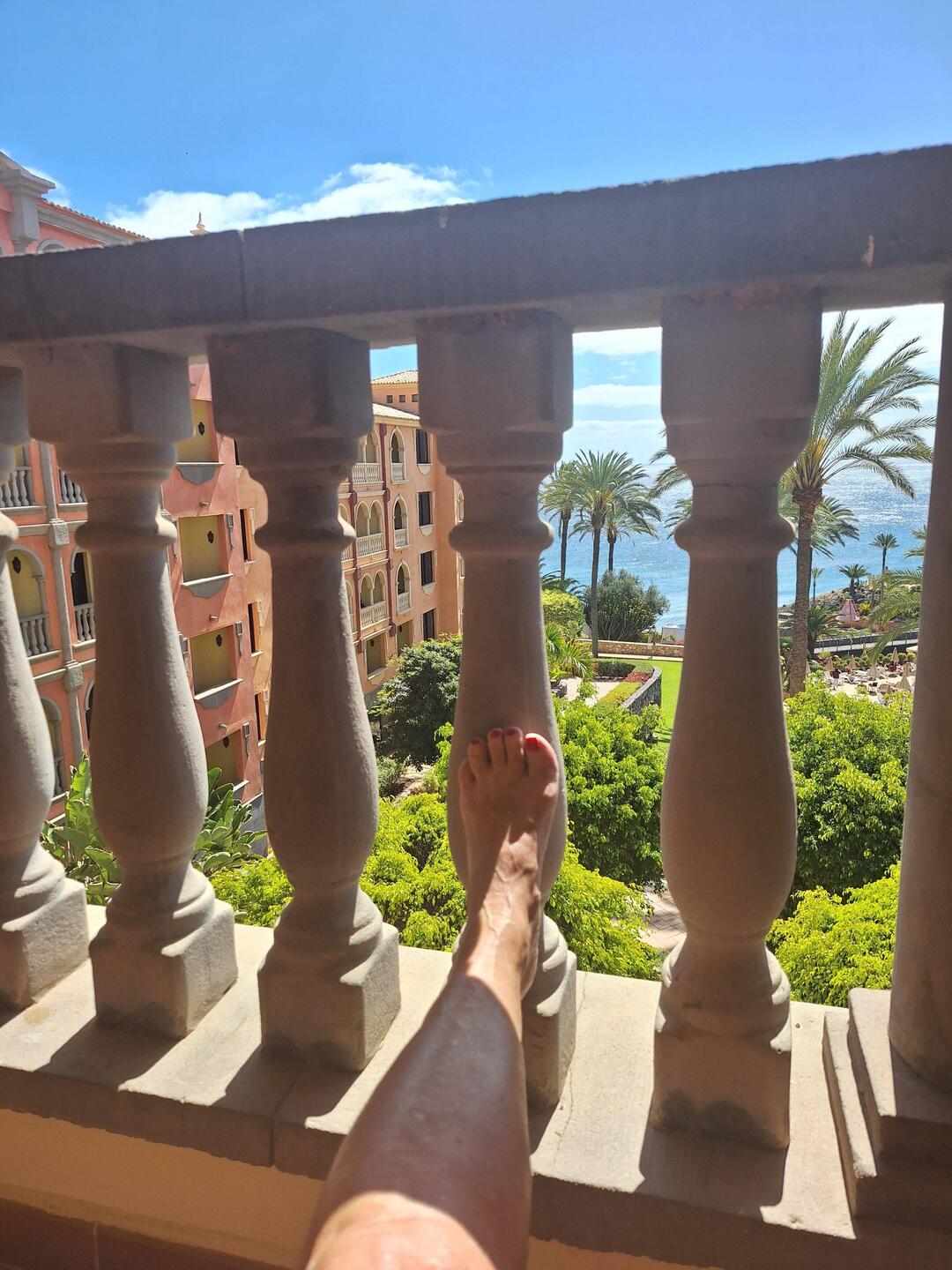 Beim Frühstück und Abendessen ist es kühl, aber über Tag ist es schön warm und das Meer ist ruhig. Unser Balkon ist gemütlich zum Lesen, Quatschen und Sonnen und sehr privat.