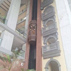 Diese überdachten Balkons sind gut geeignet, um bei Sonnenschein im Schatten und bei Regen im Trockenen zu sitzen.