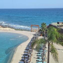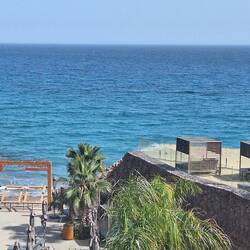 Schon zum Frühstück ist es heute deutlich wärmer als die letzten Tage: Wir brauchen weder Pulli noch Schal oder Jeans, um draußen nicht zu frieren. Bei unserem Spaziergang zum Strand empfinde ich sogar die Sonne auf dem Kopf als zu heiß und ich kehre in einer Strandbar ein, während Michael schwimmt und sonnt. Den Nachmittag verbringen wir lesend auf dem Balkon - auch um den vielen Menschen im Hotel etwas zu entgehen.Read more