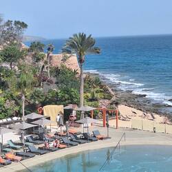 Es bleibt für unser Temperatur-Empfinden deutlich zu kühl: Zu den Mahlzeiten, die allerdings exquisit sind, nehme ich inzwischen die Steppjacke mit, um mich draußen gegen den kalten Wind zu schützen. Am Strand verzichtet Michael heute gar aufs Schwimmen. Er war mittags einmal im Pool, die Hotelanlage, architektonisch wunderschön, hält auch den Wind recht gut ab.Read more
