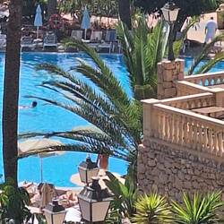 Von der lieben Tochter Eva vor ihrem Unterricht zum Flughafen gebracht, mussten wir zunächst lernen, wie man Koffer selbst aufgibt und dass Step 2 immer erst nach Step 1 erfolgt. Mit Hilfe netter Menschen gelingt alles, auch wenn mir regelmäßig das Scannen der Bordkarte zum Einlass in den Sicherheitsbereich nicht gelingen will🙈Dort werden meine Nasentropfen in der Handtasche argwöhnisch beäugt, ehe wir endlich gegen halb acht einen Kaffee ☕️ trinken können. Das boarding ist pünktlich, aber der Abflug verzögert sich um 40' durch das Enteisen der Triebwerke. Das ✈️ ist rappelvoll, aber meine Sitznachbarin ist sehr angenehm und wir plaudern ein bisschen. Nach der Landung gehen 13.30h klappt alles gut, der Minibus fährt um 14.15los und eine Stunde später umarmt uns Tony am Hotel. Wir haben ein sehr schönes Zimmer mit einem tollen Blick von unserem Balkon und Michael geht umgehend in den Pool, während ich auspacke.