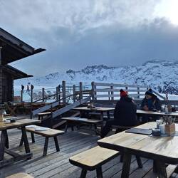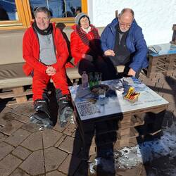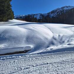 Am Morgen sieht es wolkenverhangen aus. Daher lassen wir uns Zeit bis 11h. Oben auf der Alm schneit es. Doch tapfer ziehen Marga und ich Richtung Sanon-Hütte. Burkhard und Michael fahren trotz allemMeer informatie
