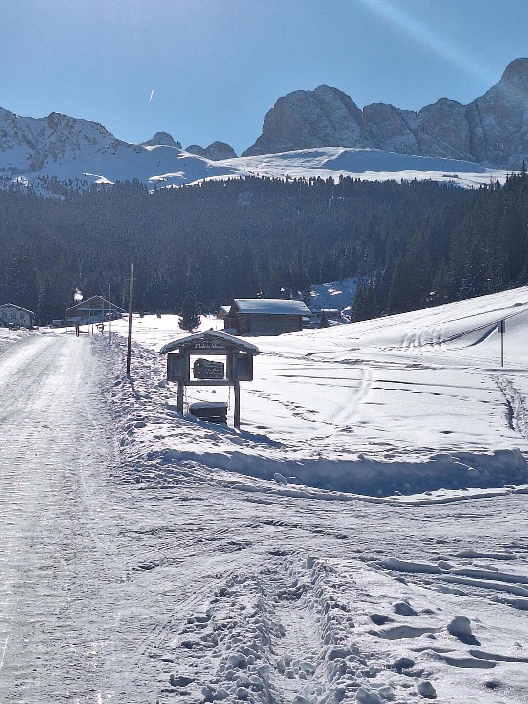 Ein Traumtag - Michael fährt Sunny Side und M♡B und ich wandern vom Compatsch in die Saltria, fahren mit dem Bus abenteuerlich zum Sporthotel Monte Pana, wo die Sonne 🌞 uns warm bescheint.