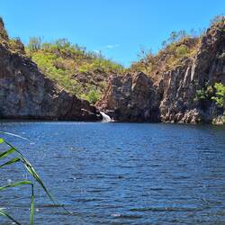 Heute bin ich auf dem Rückweg nach Pine Creek zu den Edith Falls gefahren. Hier lässt es sich am besten im Wasser aushalten.😉