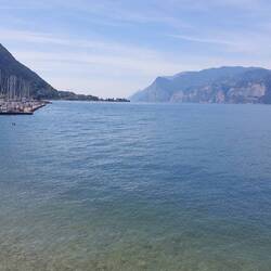 Heute die letzten Kilometer Richtung Gardasee. Toll an gekommen zu sein. Blick von Torbole auf den Gardasee.