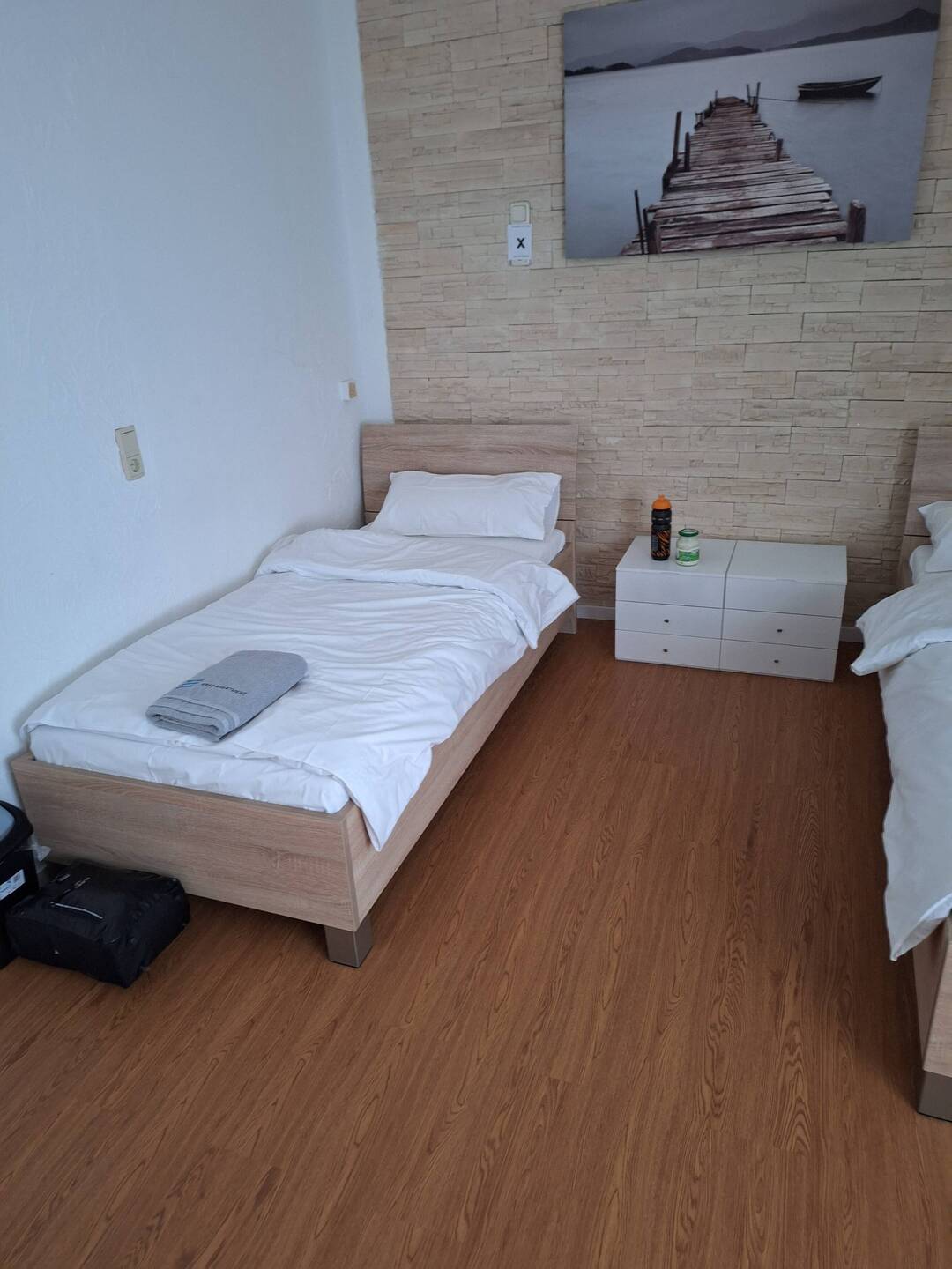 So, der erste Tag ist geschafft. Durchs Sauerland, Bergisches Land, durch Köln,jetzt in Kerpen in einem Monteursheim ein Zimmer.